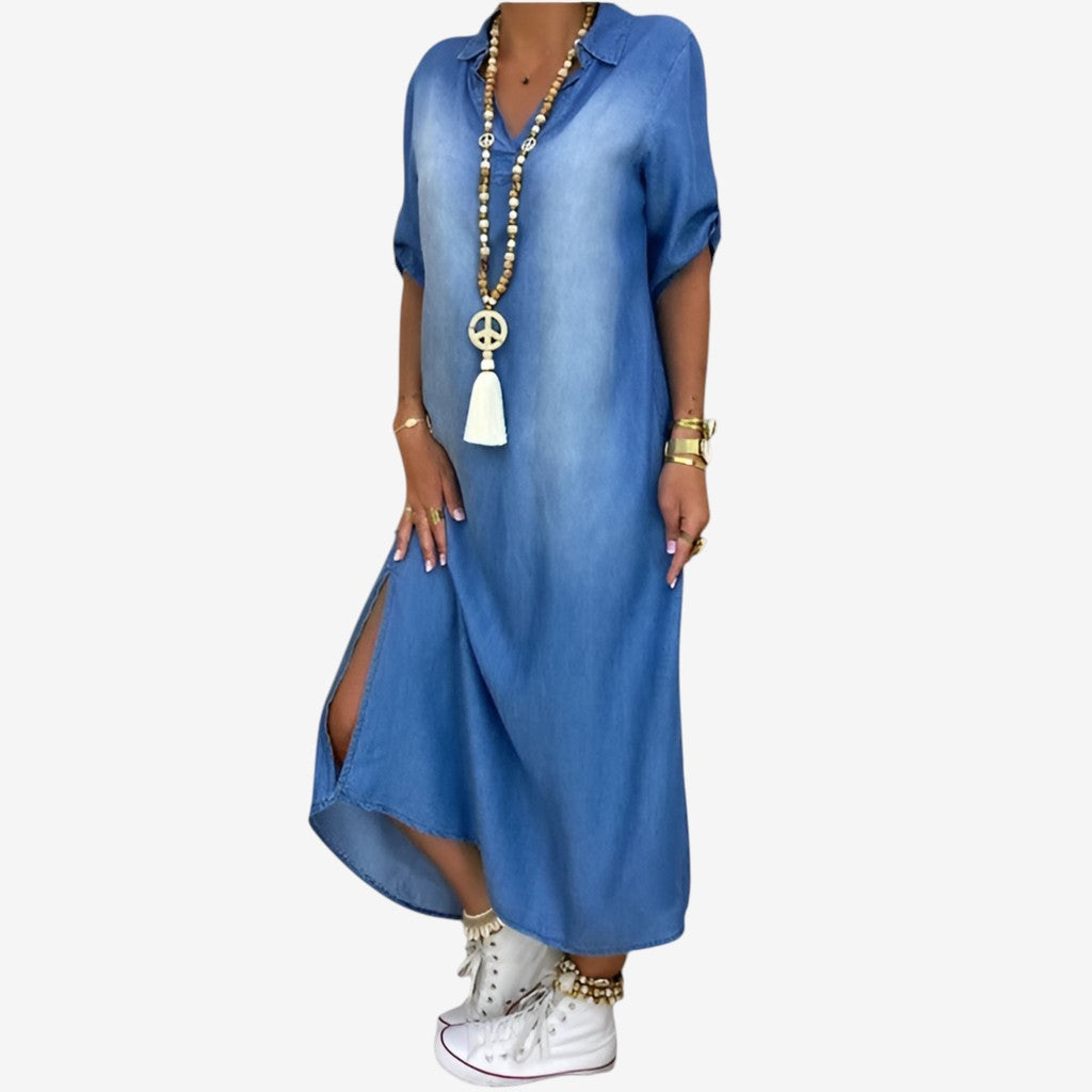 Lea™ | Langes Kleid im Jeans-Look mit Seitenschlitz