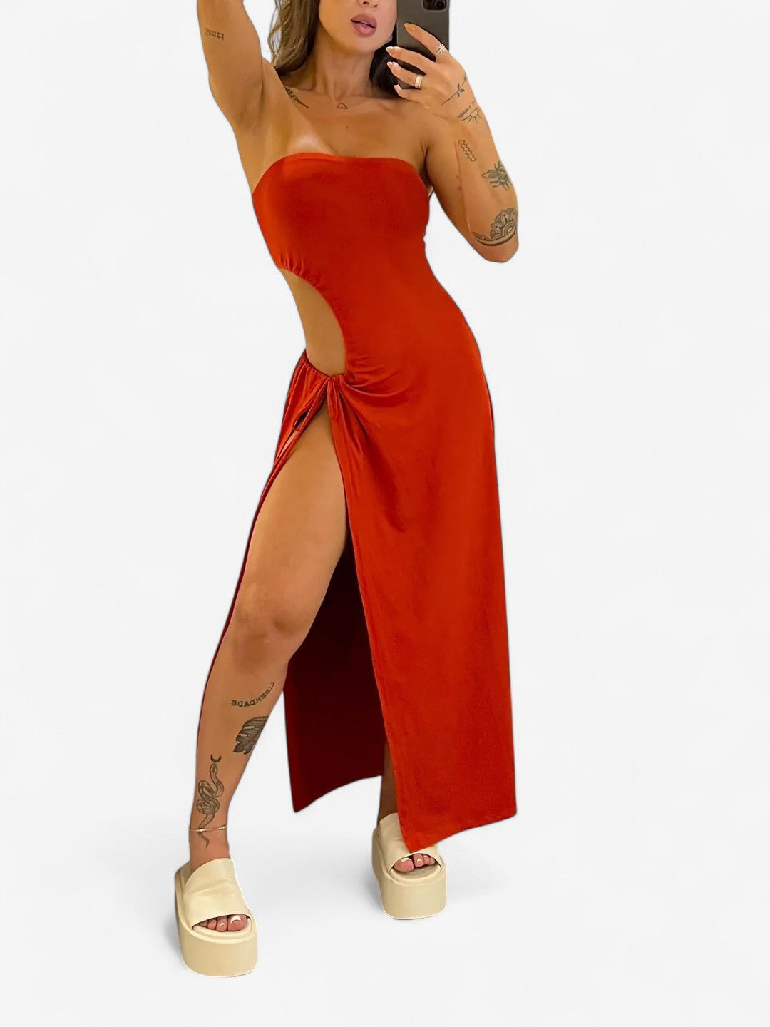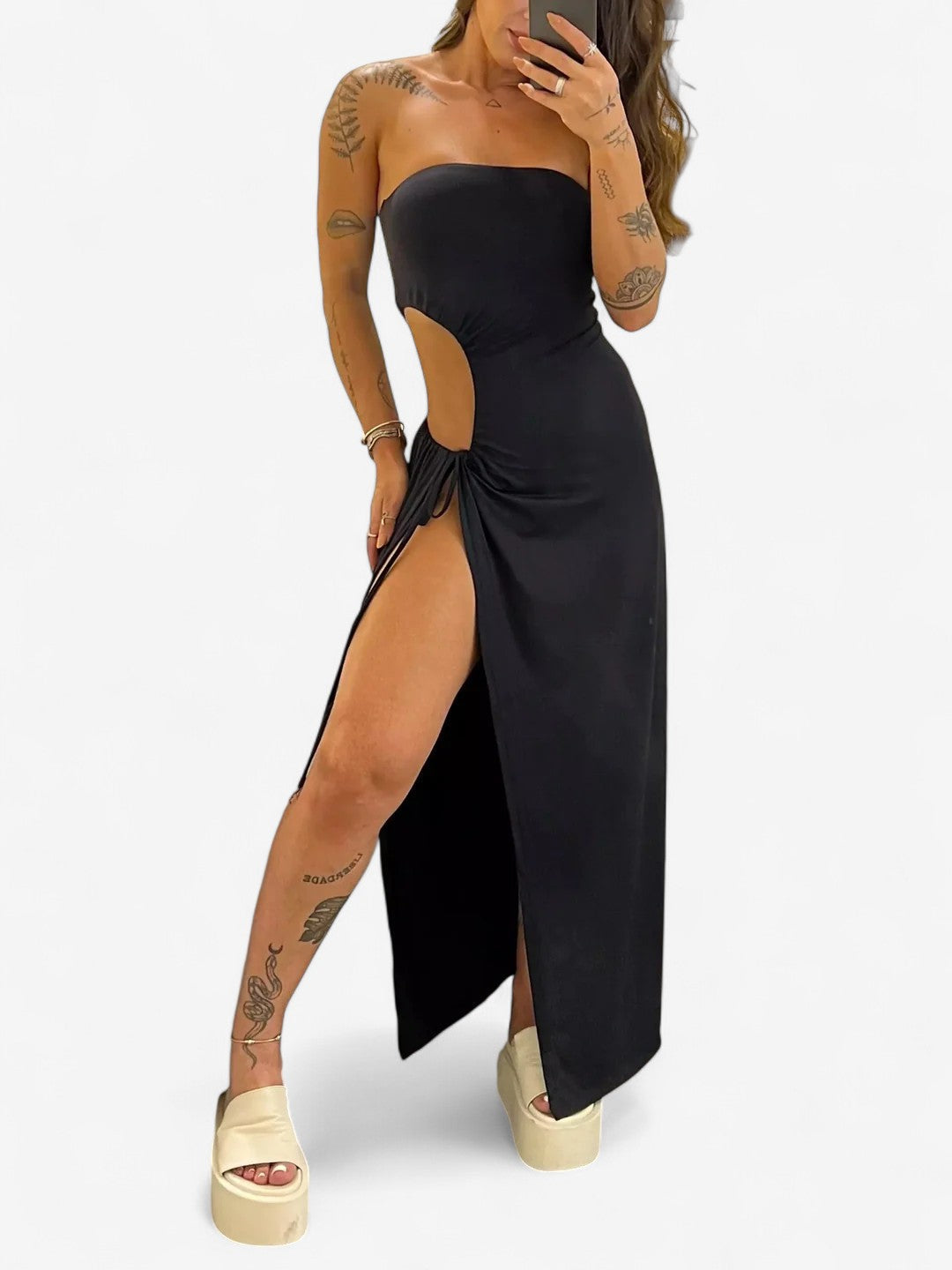 Ein feminines Kleid, das mit modernem Schnitt und verführerischem Look überzeugt – ideal für stilbewusste Auftritte.