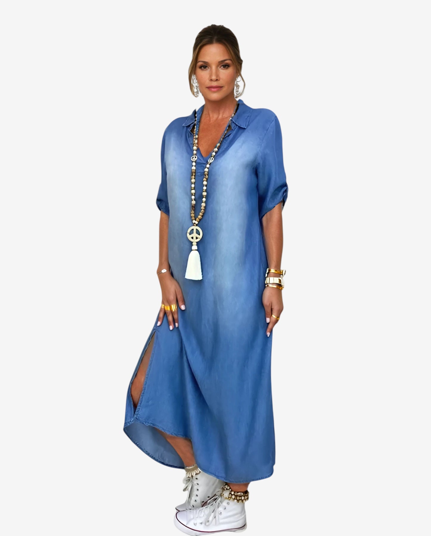 Lea™ | Langes Kleid im Jeans-Look mit Seitenschlitz