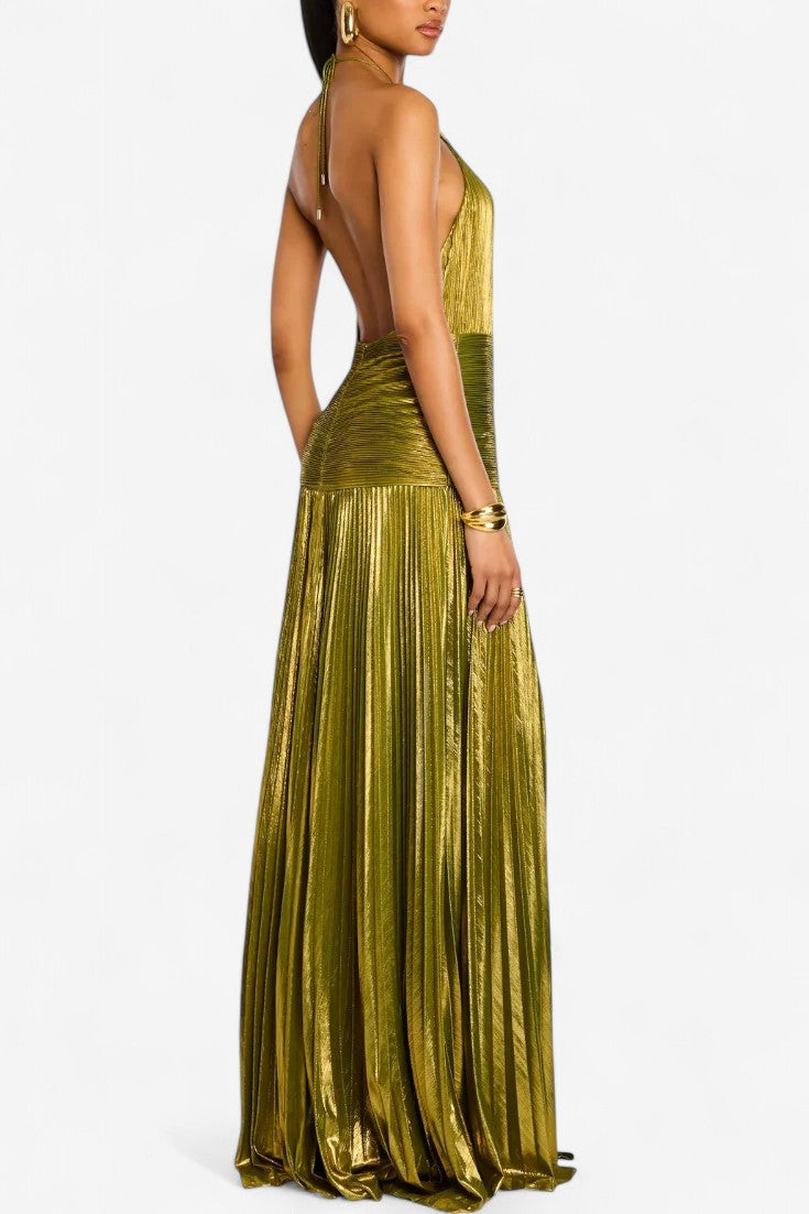 Lorette | Metallische Robe mit offenem Rücken