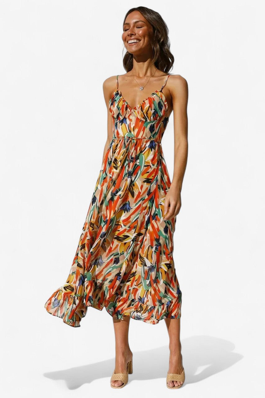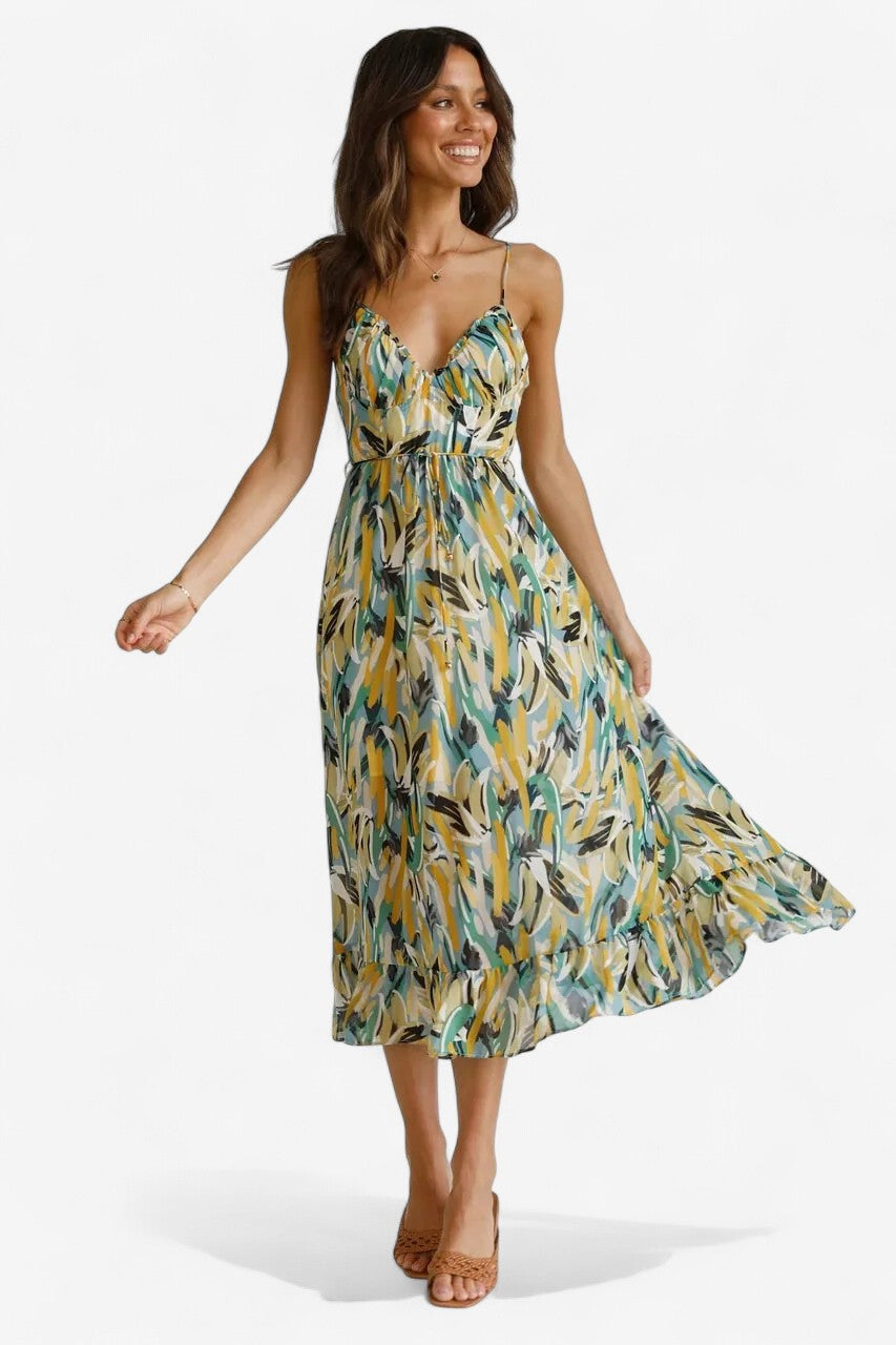 Das Milou Kleid begeistert mit einem schmeichelnden V-Ausschnitt, kurzen Ärmeln und einer fließenden Silhouette. Das elegante Design mit zartem Print unterstreicht Ihre natürliche Ausstrahlung, während der bequeme Schnitt für höchsten Tragekomfort sorgt – ob im Alltag, im Urlaub oder beim sommerlichen Fest.