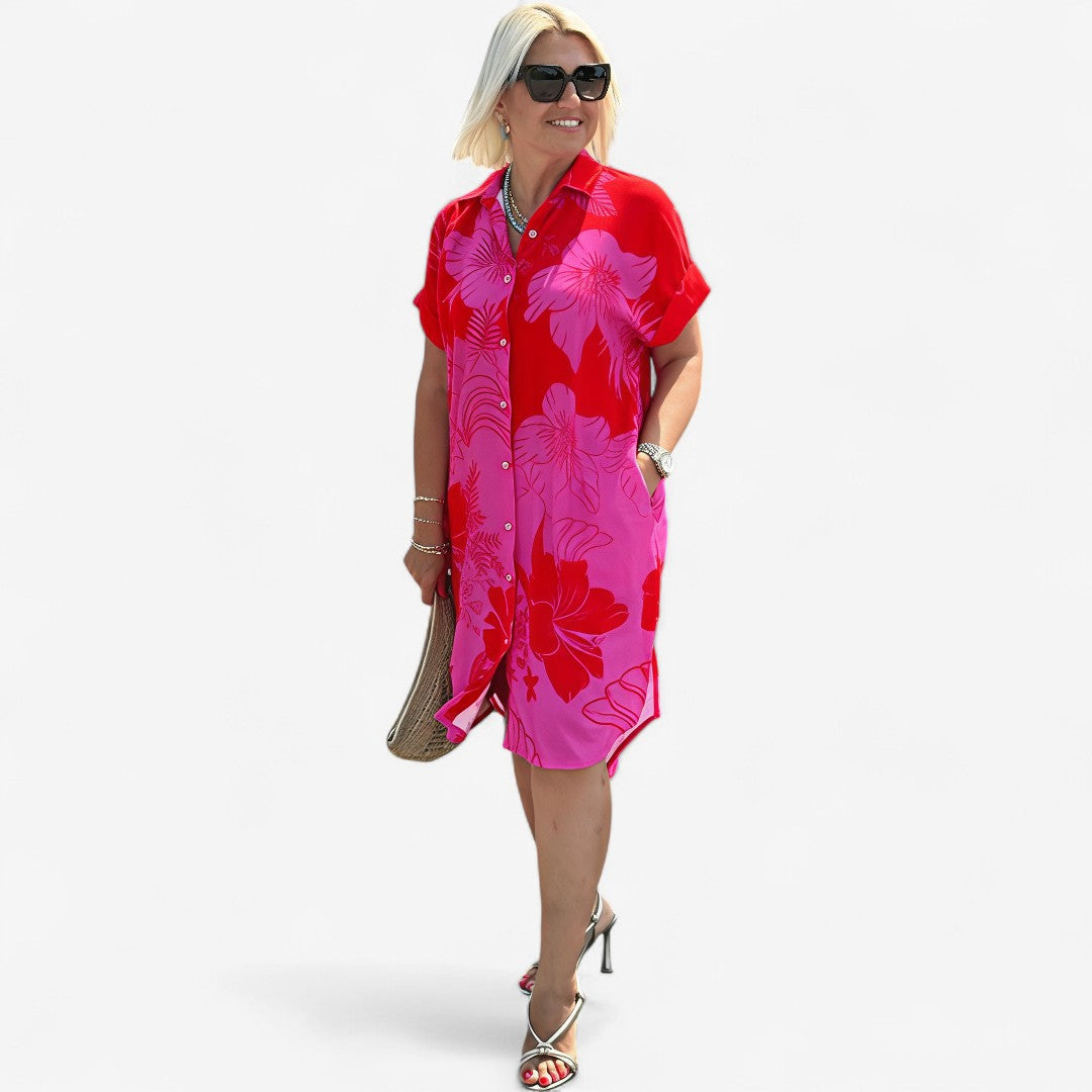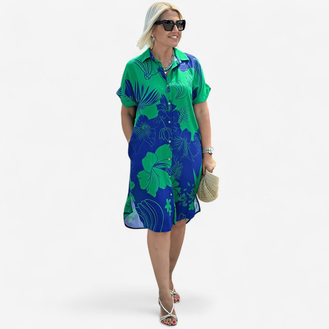 Das Naomi Kleid wurde entworfen, um dich mühelos durch sonnige Tage zu begleiten. Der lockere Schnitt und der fließende Stoff sorgen für Komfort, während das Blumenmuster einen frischen Look verleiht.